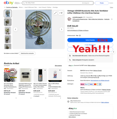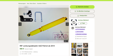 Ich erwarte nicht, dass die "UAZ-Leute" anders drauf wären, als der Rest. Die Bitte nach einem Bild als Vorwurf an den Käufer zu verdrehen, dass man den Kaufgegenstand bevor man unnötige Abhol-Kilometer fährt, wenistens mal komplett auf einem Foto gesehen hat, ist schon ziemlich dummdreist und frech. Das ist exakt die selbe Nummer, wie oben drüber mit den Versandkosten und der allgemeinen Preispolitik bei UAZ-Teilen. Wir müssen uns in dieser Gesellschaft über nichts wundern, über gar nichts!