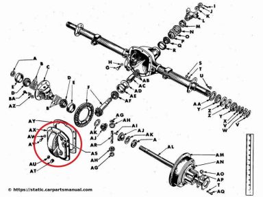 Zur Unterscheidung mal direkt nebeneinander: typische Ford-Achse dieser Zeit vom Modell-A, Dana/Spicer-27 und die Timken-Achse, beide vom Jeep MB. Ganz markant ist der ausgeformte Deckel (roter Kreis) von der Dana. Eine Zeichnung von der Allison-Achse habe ich nicht gefunden. Die waren vermutlich ziemlich selten und auch die klassischen Jeeps wurden im Laufe der Zeit fast alle auf die stabileren Dana-Achsen umgerüstet.