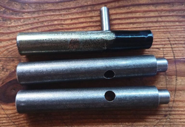 Laut Radnabe kämen Rändelbolzen mit Ø 16,3 und 16,5mm in Frage, denn die entsprechenden Bohrungen haben irgendwas zwischen Ø 15,8 und 15,9mm. Damit sind zumindest längere Bolzen, bzw. Ersatzbolzen für unterwegs einfach mal klar definiert.