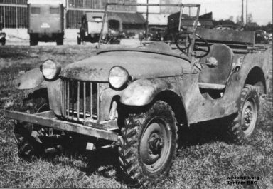 Zweifellos stand einer der Kandidaten (Ford Pygmy, Bantam BRC, Willys MA) beim optischen Erscheinungsbild Pate, aber es gelangte mit ziemlicher Sicherheit nie eines der Vorserienmodelle in die Sowjetunion, um das Fahrzeug tatsächlich fast zeitgleich zur im Camp Holabird laufenden Erprobung zu "kopieren". Bantam war der einzige Hersteller, der bereits nach den geforderten 49 Tagen (!!!) Mitte September '40 ein fahrfertiges Fahrzeug dem US-Militär übergab. Willys und Ford brauchten bis November und da hatten die Bantams schon mehrere tausend Testkilometer erfolgreich abgespult.