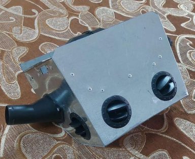 ante, die anstelle des Aschekastens und der unteren Wölbung mit dem runden Lüfterausschnitt am Rahmen des Wärmetauschers befestigt wird. Solch Kasten kann man in Russland fix und fertig für umgerechnet ca. 110,- € zzgl. Versand kaufen.