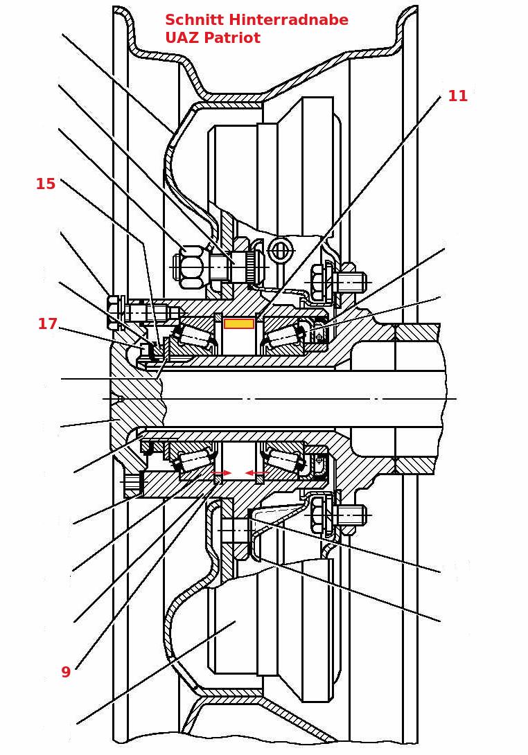 Die Timken-Achsen am UAZ sind Achsen, die am Differenzialkörper (so wie bei der Zeichnung) quer-