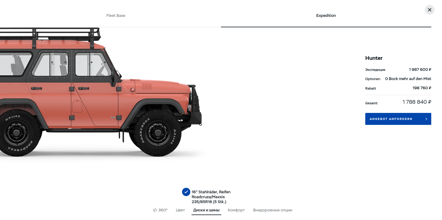 Bei dem ganzen Felgenwahnsinn und dem Zahlenwirrwar hatte ich leicht den Durchblick verloren, den Wald vor lauter Zahlenreihen nicht mehr gesehen und versehentlich 6J16H2, ET22, 5x139,7 & ML-Ø 108,6 geordert. Aufgefallen war mir das tatsächlich erst nach Bestellbestätigung durch den Tipp eines Zeitgenossen, der genau diese Felgen sucht(e). Offenbar sind die Felgen bei den 469igern sehr begehrt, um die alten 15"-Rumpelfelgen mit den 8.40iger Pneus gegen 225/85-16 zu ersetzen. Wir sind uns einig geworden.