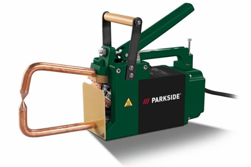 Erster Schweißpunkt, direkt nach dem Auspacken - ich würde sagen: ausbaufähig. Den Stromfluss etwas kürzer halten, das 1mm-Blech reißt außen um den Punkt herum, so wie es sein soll. Am Gerät musste nichts eingestellt oder justiert werden, Spitzen ein- und den Griff anschrauben, Stecker in die Dose, läuft. Ich habe da von Parkside schon anderes gehört.