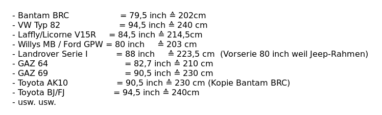 Das ist nur eine kleine Auflistung der mir spontan einfallenden 4x4 Infantriefahrzeuge (streiche Typ 82 und ersetzte ihn gg. Typ 166) weltweit in der Zeit von Ende der 1930iger bis in die 1950iger Jahre. Worauf ich hinaus will, selbst anhand der Radstände kann man nicht von einer Kopie sprechen, wenn anhand eines Fotos vergleichbare Radstände herausgemessen worden sein sollten. Verschiedene Hersteller weltweit, selbst in direkter Kopie wie der Toyota AK10 vom Bantam BRC 60 (die Japaner hatten tatsächlich mind. einen der 1500 Test-Bantam MK2 auf einer der Inseln erbeutet, die sie den Amerikanern nach "Pearl Harbour" im Pazifik abgenommen hatten), haben verschiedene Radstände, denn allen liegen vergleichbare militärische Anforderungen und die selben physikalischen Gesetze zu Grunde.