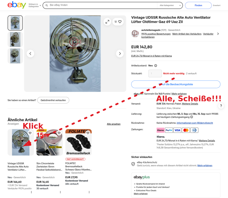 Das derjenige mit dem tatsächlichen Aufwand auch ein paar Euro dran verdienen soll, ist absolut okay. Allerdings muss ich dem nicht die gesamten Spritkosten für einen Urlaubstripp bezahlen. Für die Kohle kann ich selbst nach Kaliningrad fahren und die Teile direkt vor Ort einbauen lassen! Also Augen auf, Taschenrechner und Hirn einschalten, Ihr werdet gnadenlos abgezogen!