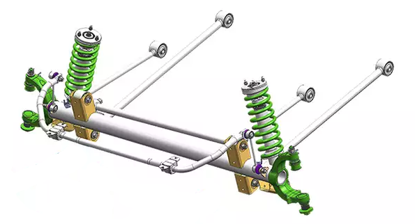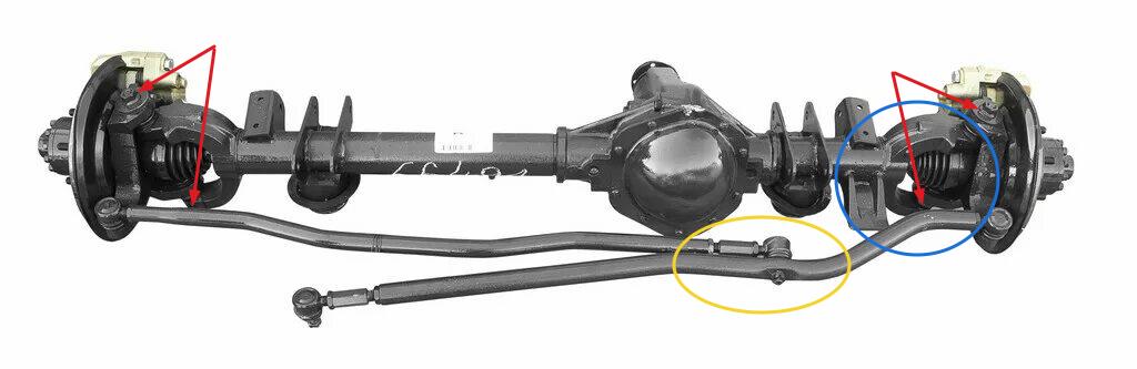 Die Kolchoseachsen basieren auf dem Timken-Baumuster und Militärachsen auf dem alten Baumuster von Ford und der Unterschied besteht in der Verwendung von Vorgelegen und teilweise automatischen Differenzialsperren bei den Militärachsen. Ich gehe aufgrund der frühen und engen Zusammenarbeit zwischen Timken und Ford davon aus, das beide Achsen gemeinsamen Ursprung haben. Allerdings gibt es online wenig verwertbare Aufzeichnungen dazu. Die Militärachsen sind kürzer übersetzt und ermöglichen durch das extra Getriebe an jeder Radnabe eine deutlich höhere Bodenfreiheit unter der gesamten Achse. "Kolchose"-Achsen werden sie etwas abwertend, als die "billigen" und weniger aufwändigen Standardachsen be-